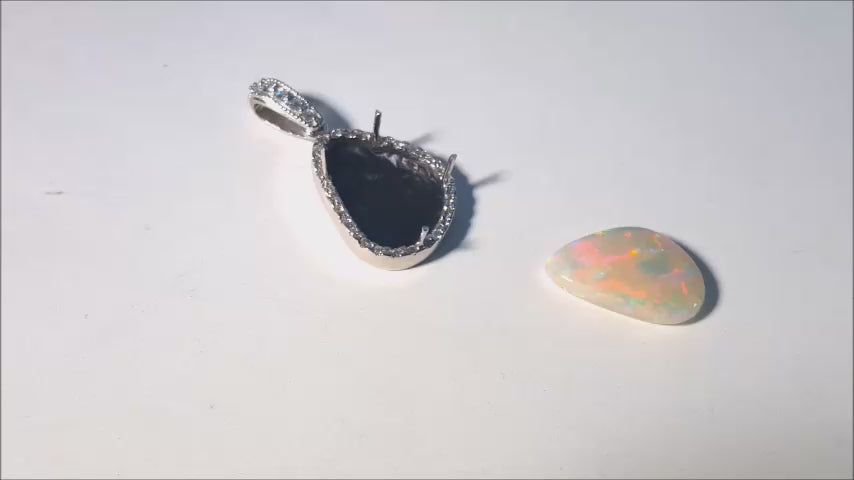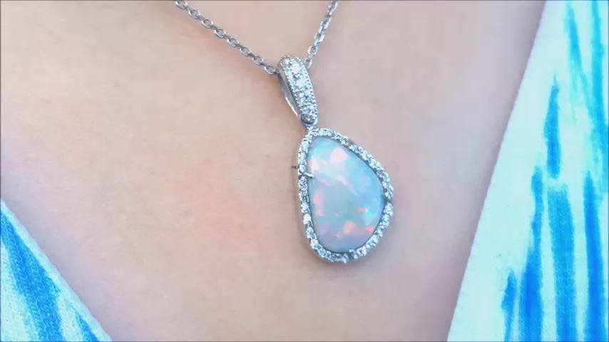 4.78 ct. Solid Australian Opal Pendant Halo Diamond 18K White Gold